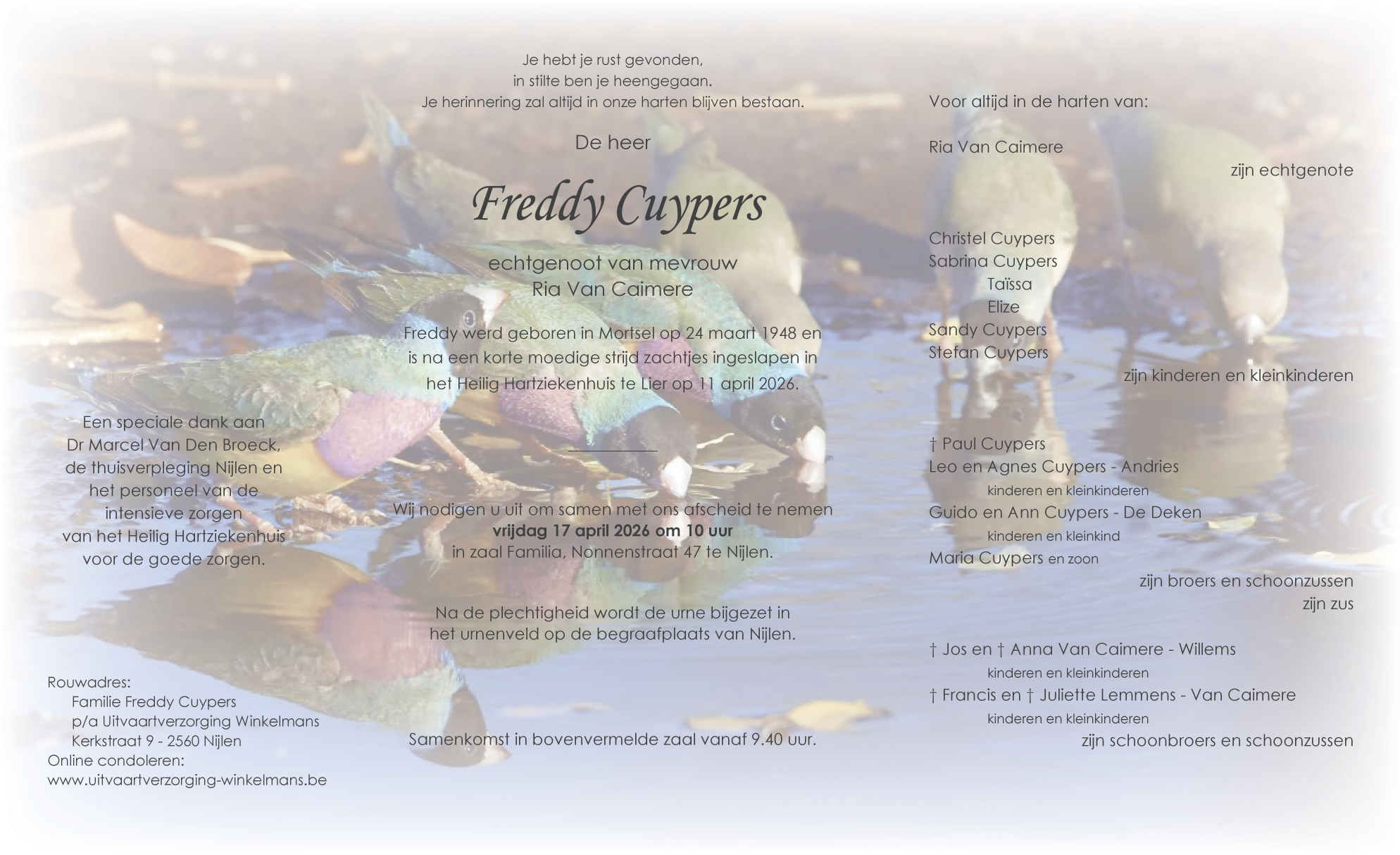 Overleden te Lier (2500) op zaterdag 11 april 2026 op 78-jarige leeftijd