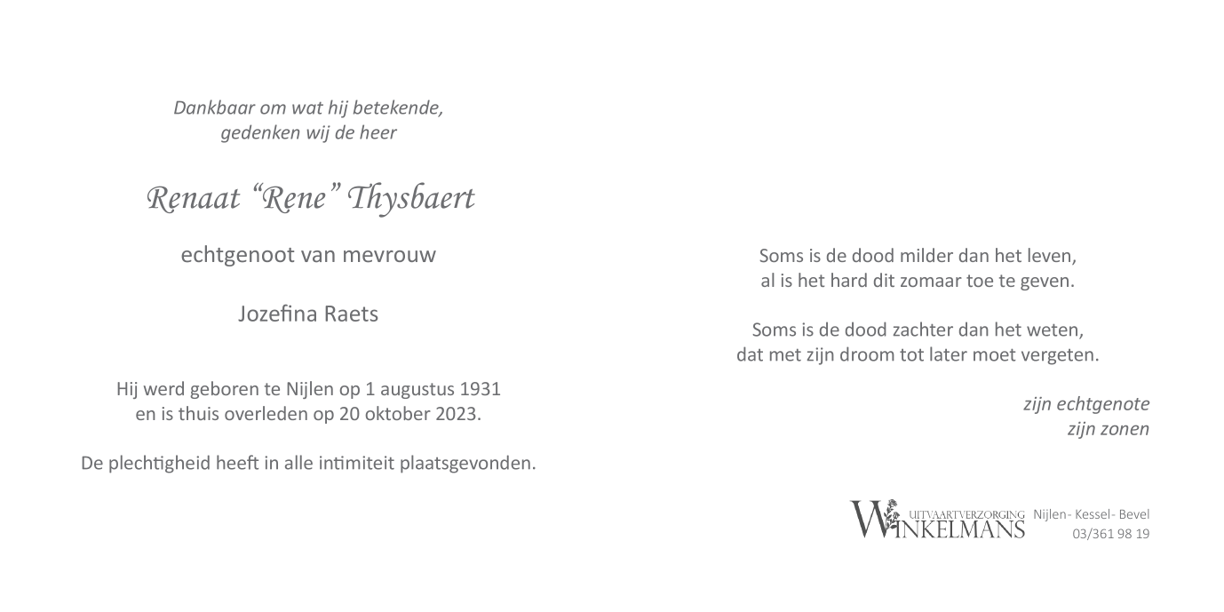 Overleden te Grobbendonk (2280) op vrijdag 20 oktober 2023 op 92-jarige leeftijd
