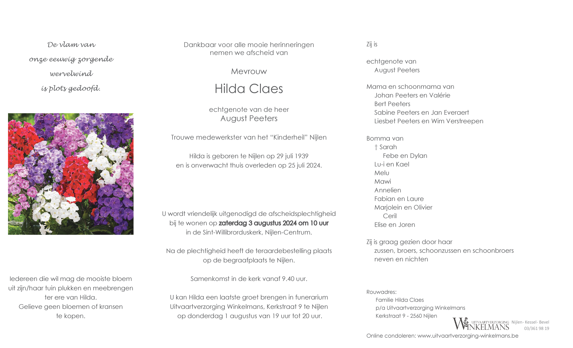 Overleden te Nijlen (2560) op donderdag 25 juli 2024 op 84-jarige leeftijd