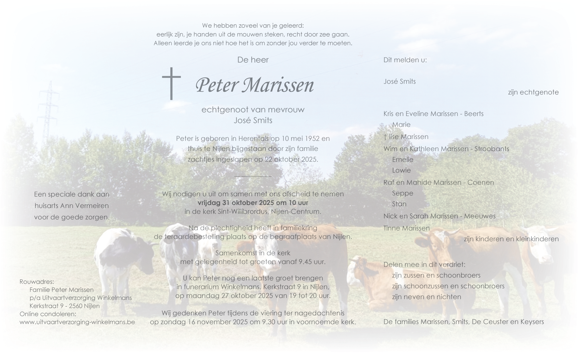 Overleden te Nijlen (2560) op woensdag 22 oktober 2025 op 73-jarige leeftijd