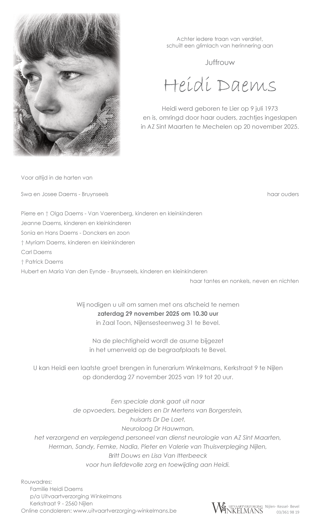 Overleden te Mechelen (2800) op donderdag 20 november 2025 op 52-jarige leeftijd