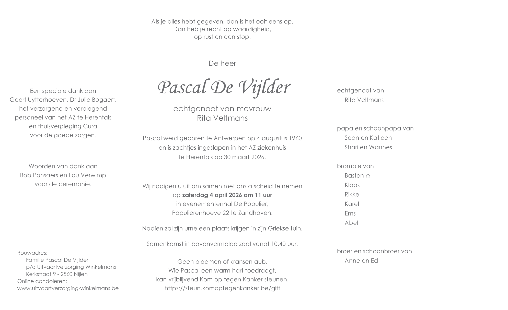 op maandag 30 maart 2026 op 65-jarige leeftijd