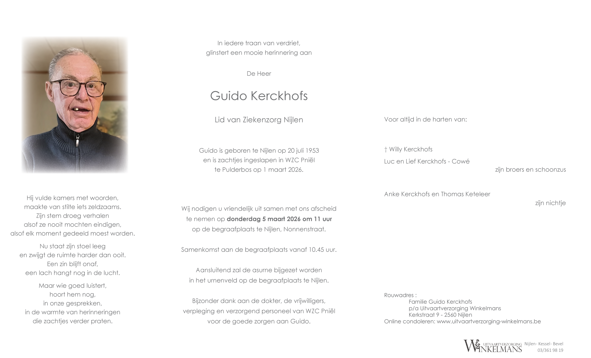 Overleden te Pulderbos (2242) op zondag 1 maart 2026 op 72-jarige leeftijd