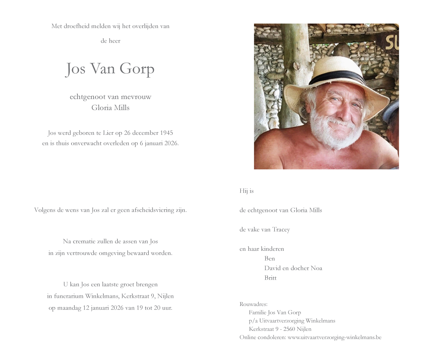 Overleden te Grobbendonk (2280) op woensdag 7 januari 2026 op 80-jarige leeftijd