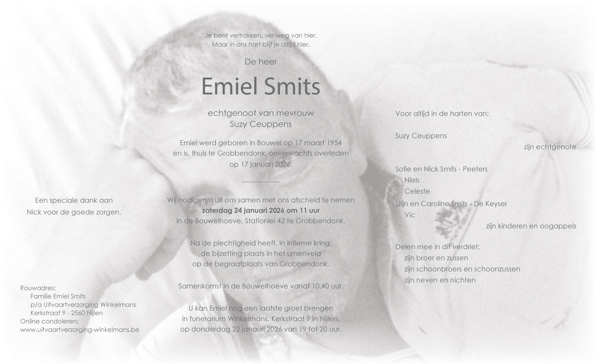 Overleden te Grobbendonk (2280) op zaterdag 17 januari 2026 op 71-jarige leeftijd