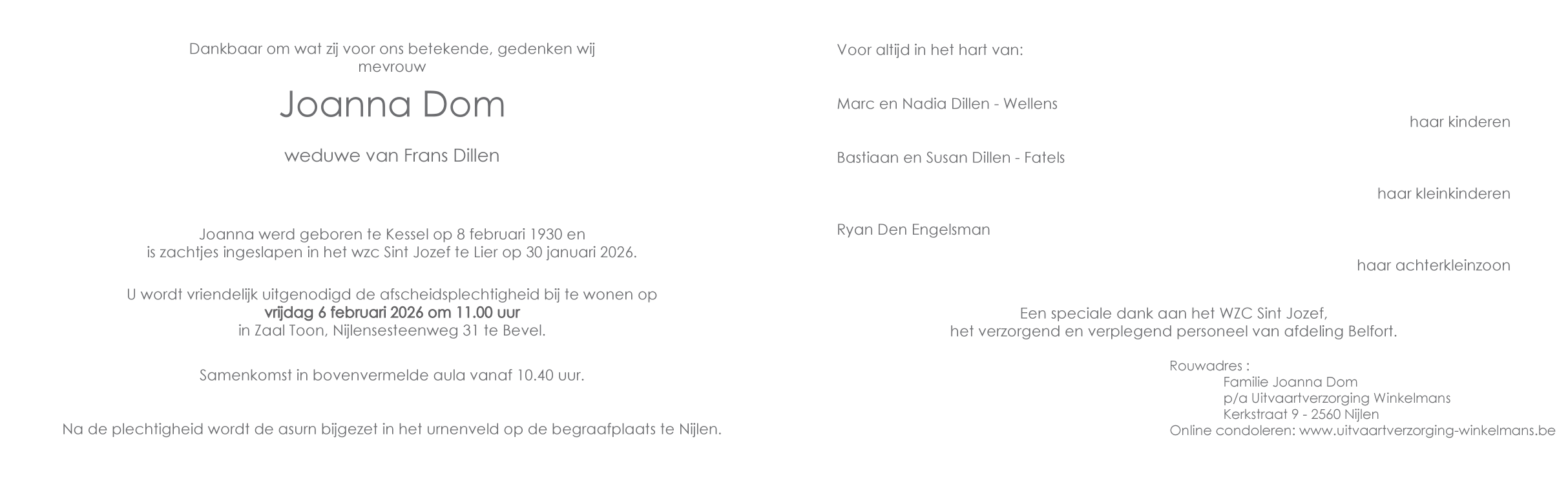 Overleden te Lier (2500) op vrijdag 30 januari 2026 op 95-jarige leeftijd
