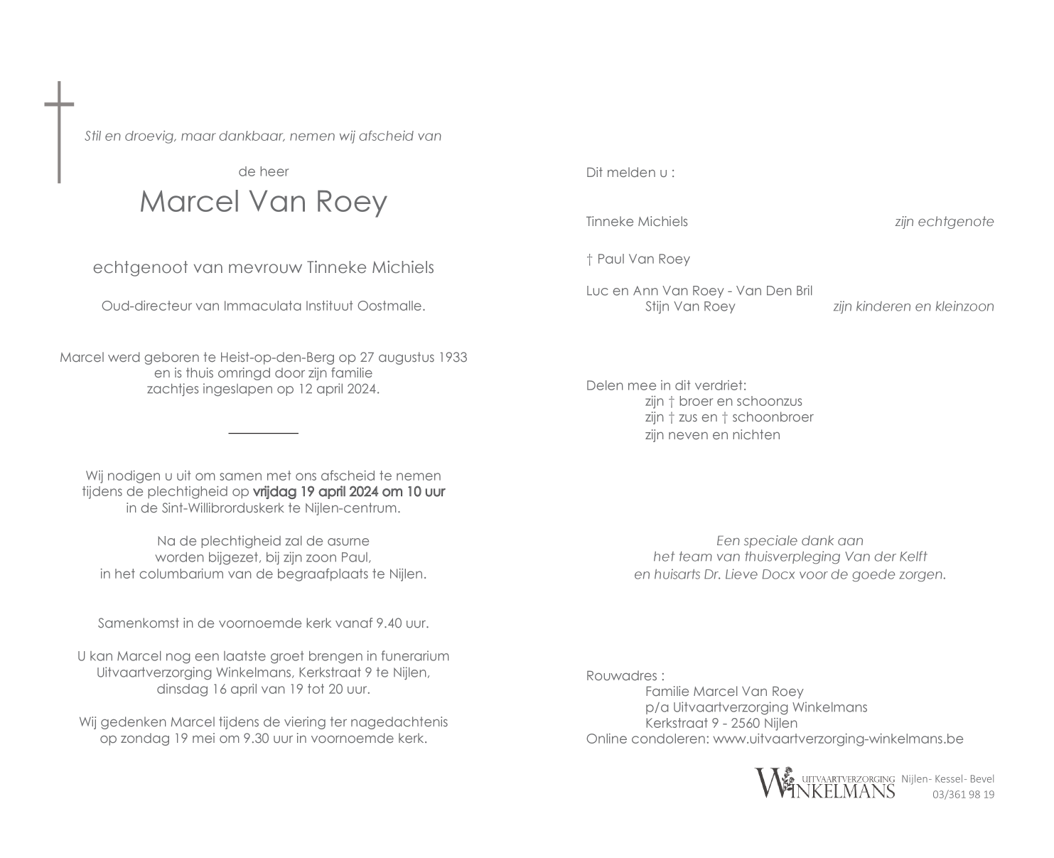 Overleden te Nijlen (2560) op vrijdag 12 april 2024 op 90-jarige leeftijd