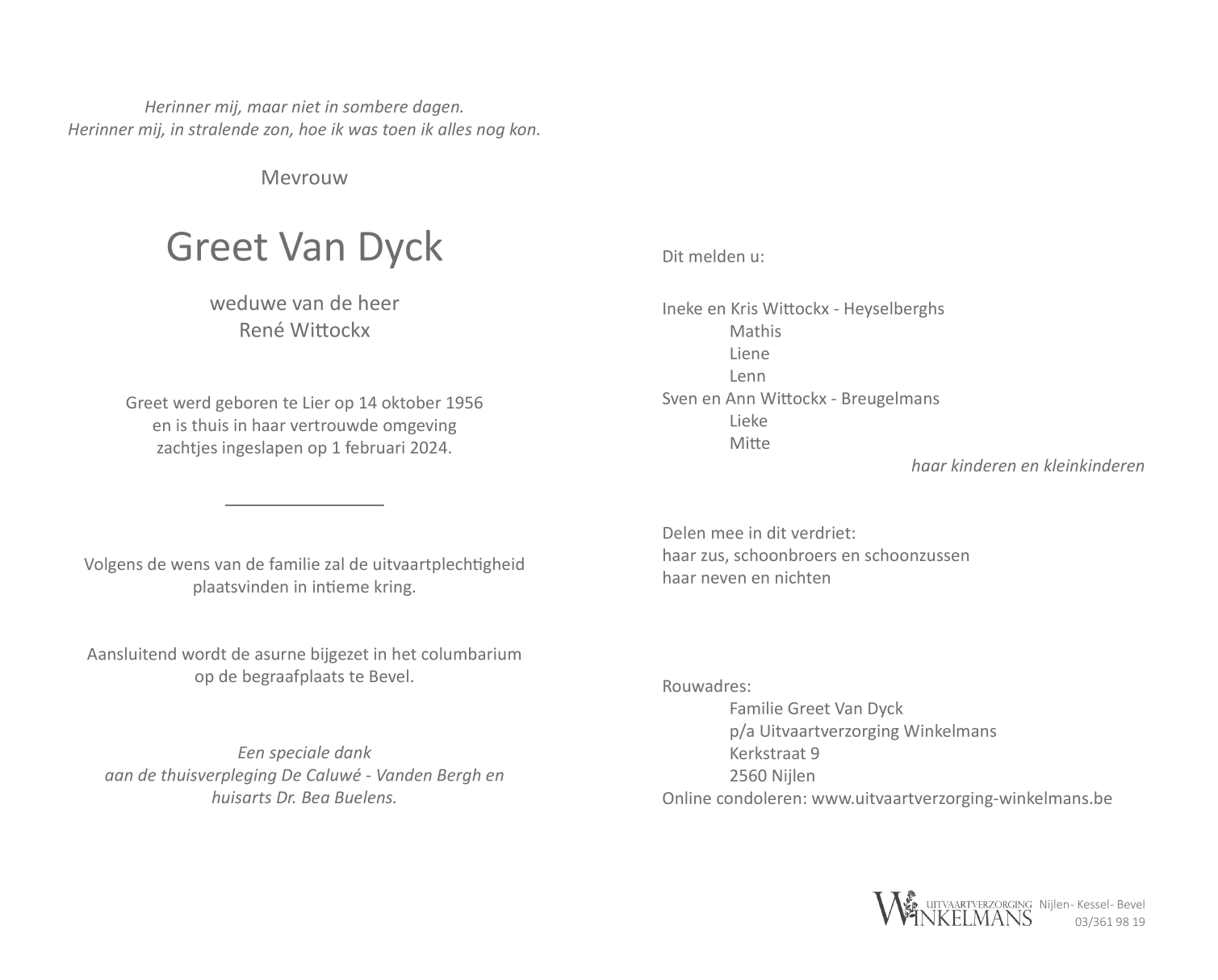 Overleden te Bevel (2560) op donderdag 1 februari 2024 op 67-jarige leeftijd