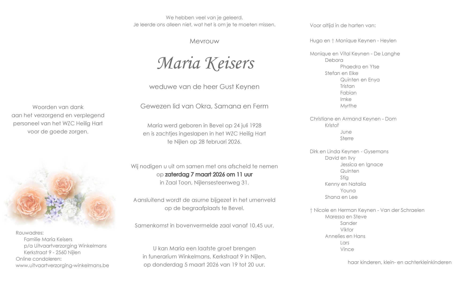 Overleden te Nijlen (2560) op zaterdag 28 februari 2026 op 97-jarige leeftijd