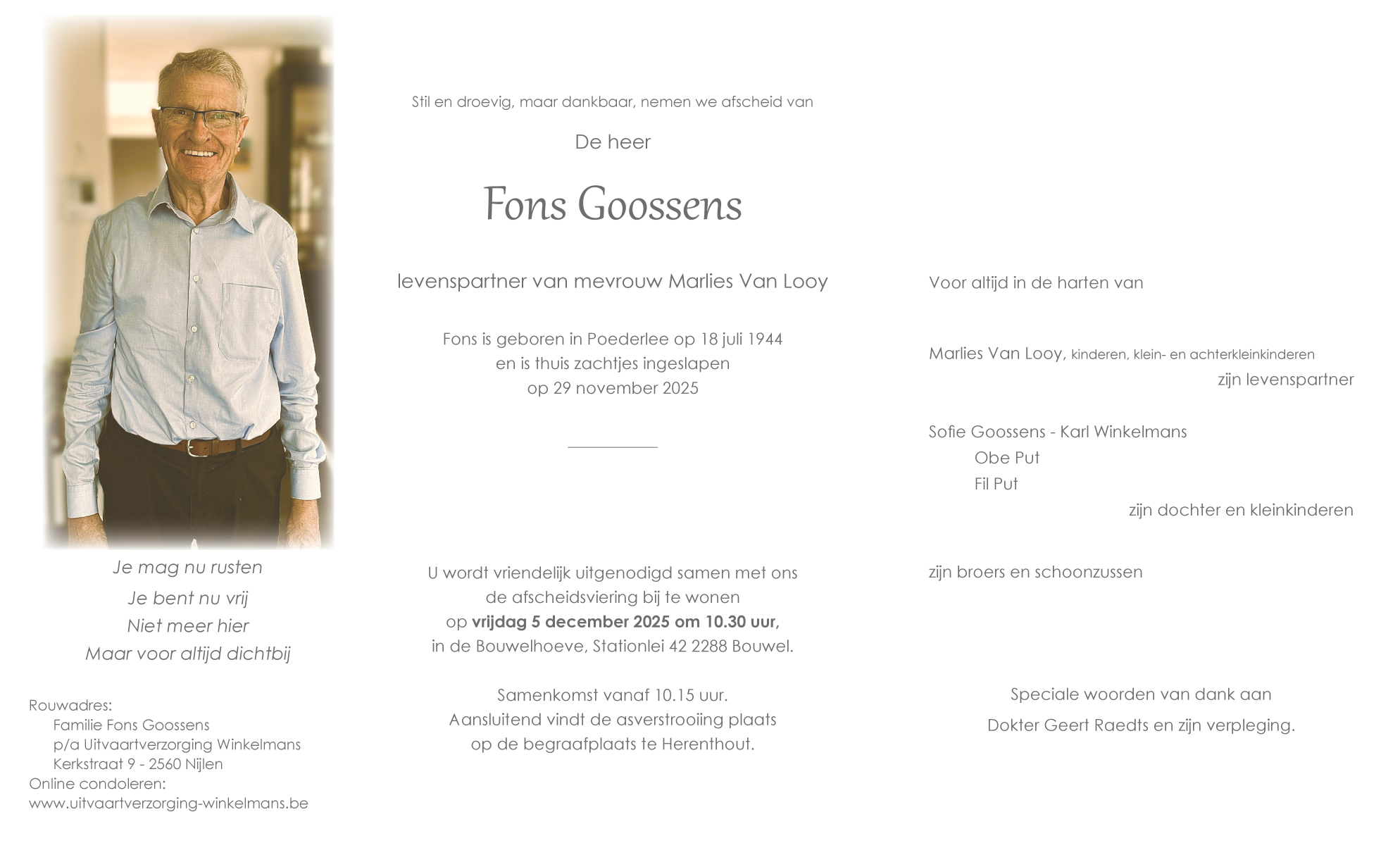 Overleden te Bouwel (2288) op zaterdag 29 november 2025 op 81-jarige leeftijd