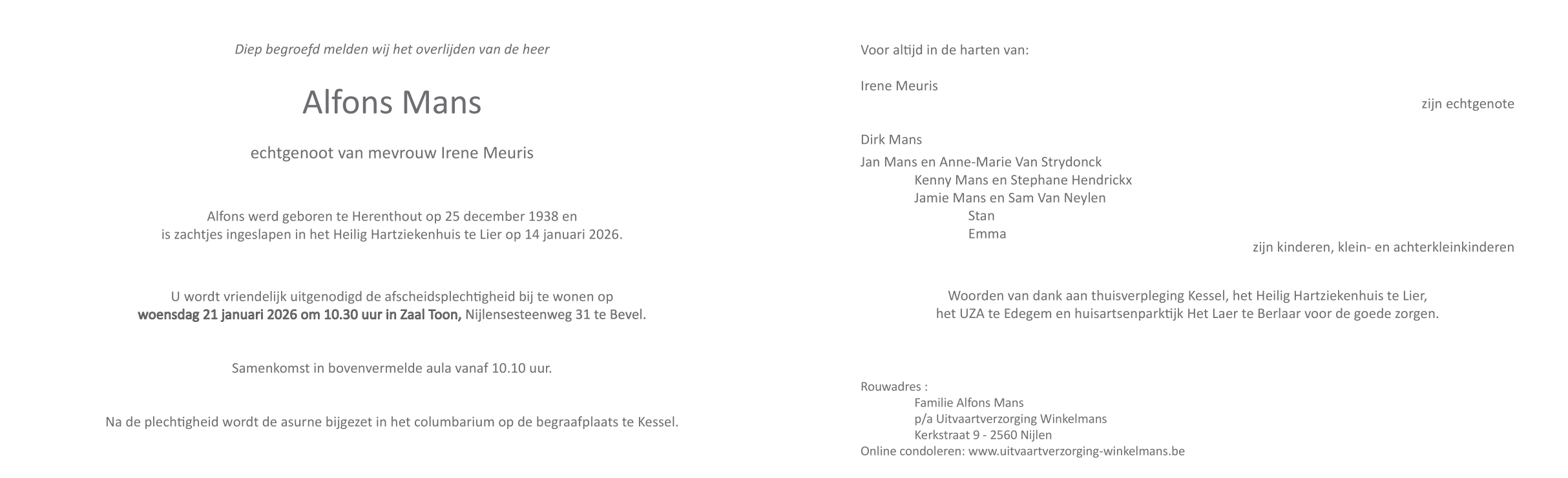 op woensdag 14 januari 2026 op 87-jarige leeftijd