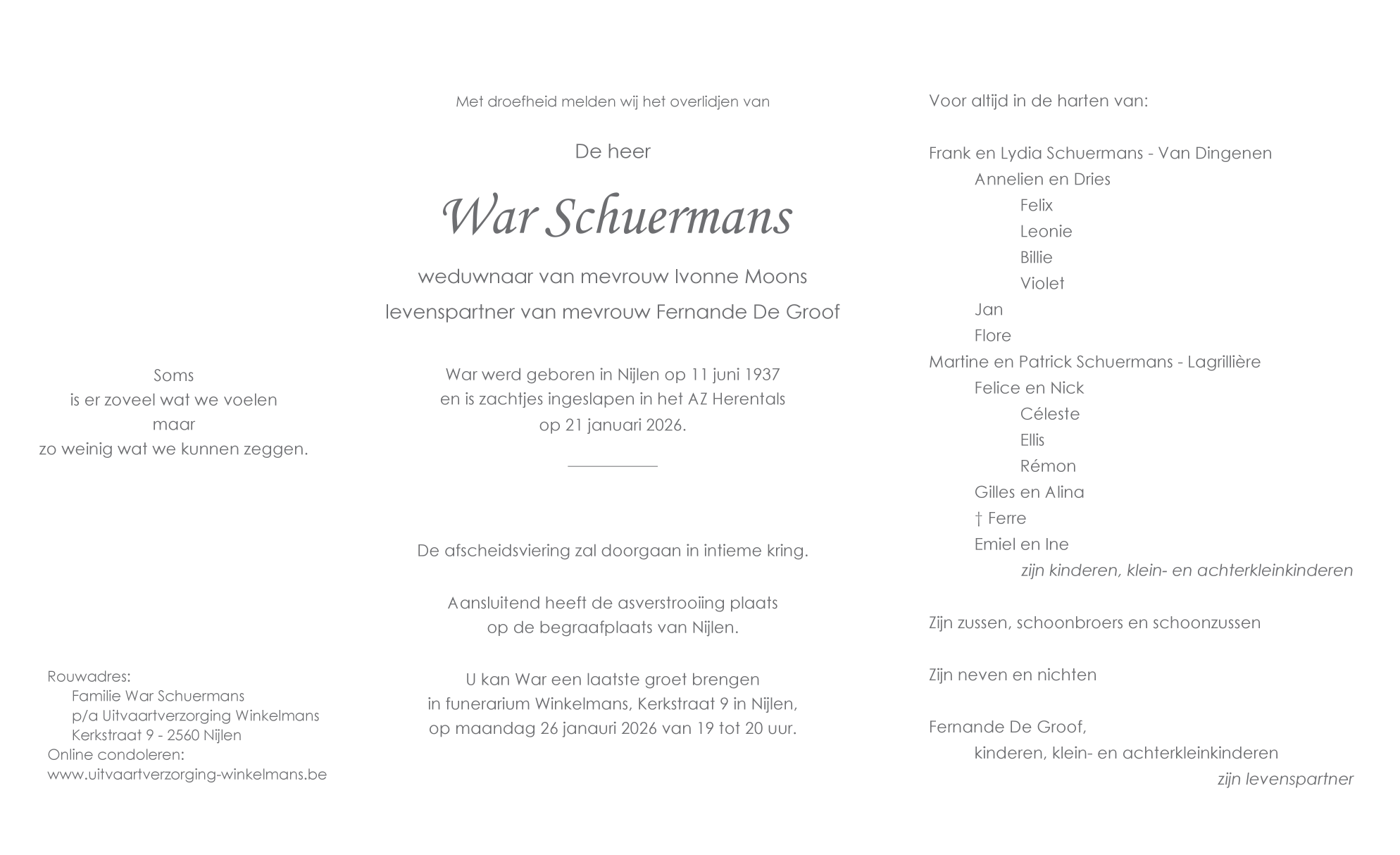 Overleden te Herentals (2200) op woensdag 21 januari 2026 op 88-jarige leeftijd