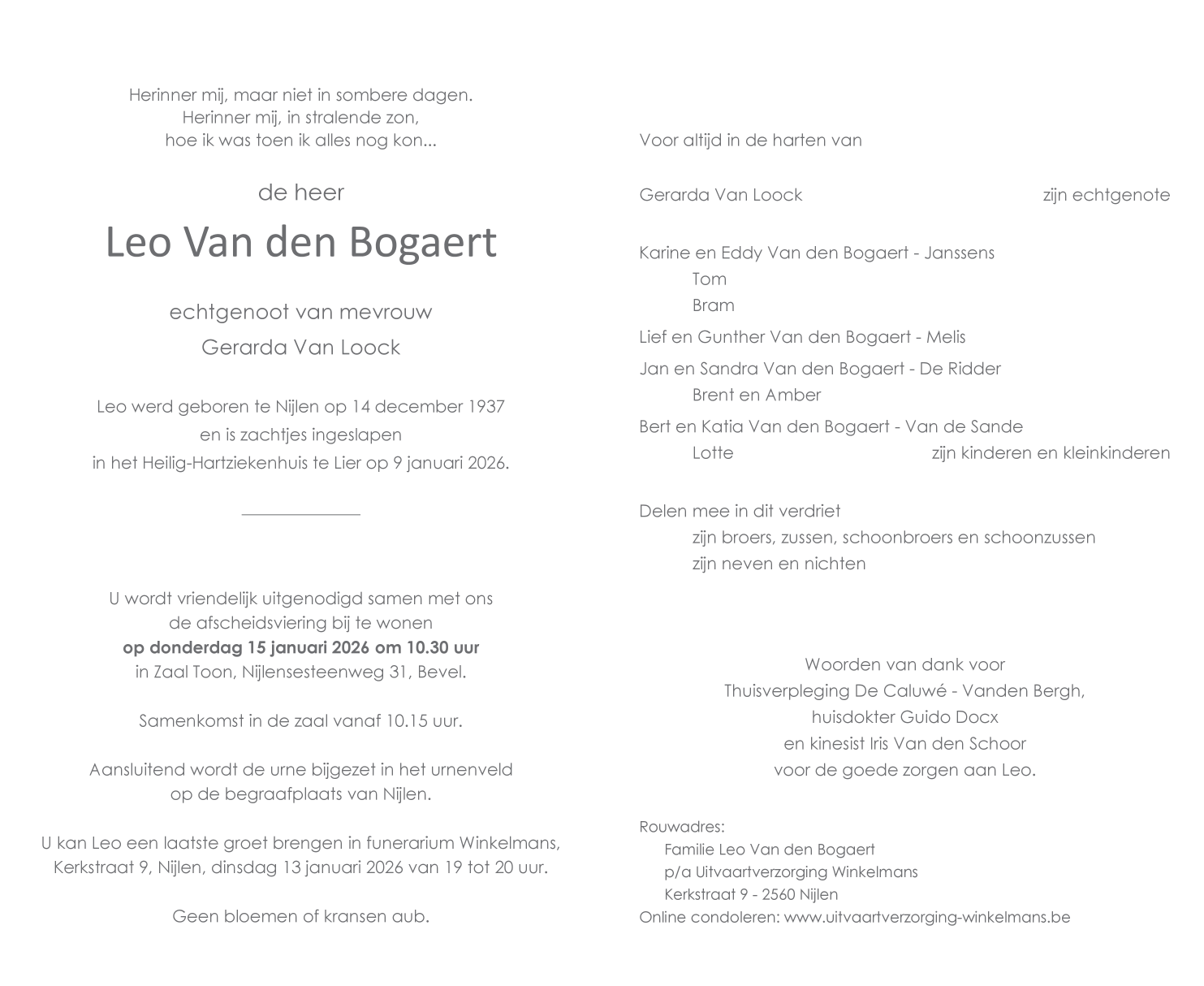 Overleden te Lier (2500) op vrijdag 9 januari 2026 op 88-jarige leeftijd