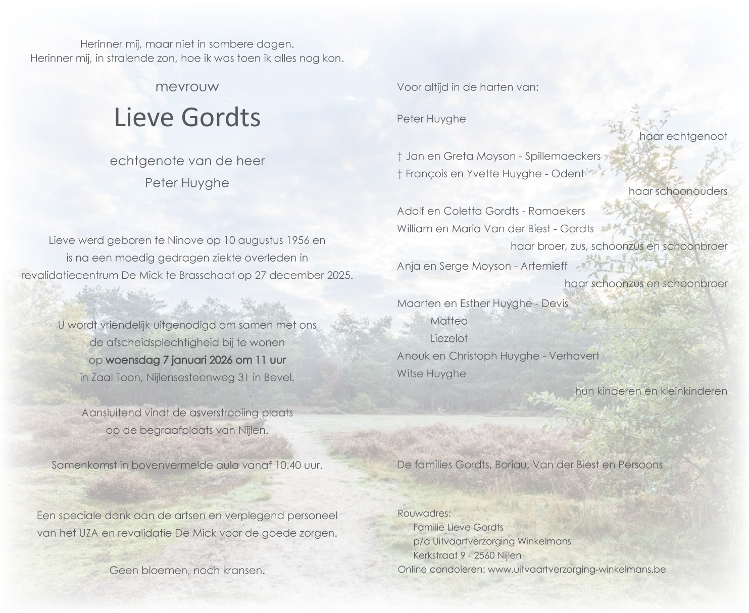 Overleden te Brasschaat (2930) op zaterdag 27 december 2025 op 69-jarige leeftijd